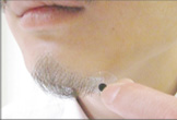 ヘアコンタクトに使用している超極薄素材(透湿性皮膜)よりもさらに薄いわずか0.02mmの超極薄素材を使用しているため、地肌と完全に同化しネットタイプつけヒゲとは比較にならない自然感を実現。